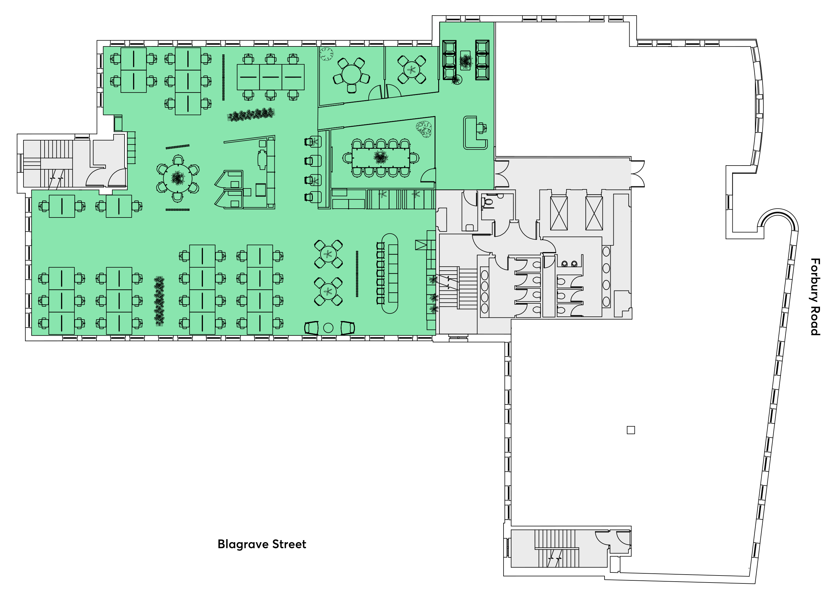 The second floor suite has been newly fitted to the highest standard. It provides open plan workspace, complete with meeting rooms, breakout spaces and kitchens, suitable for a wide range of activities of occupiers.